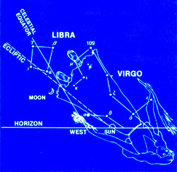The brightest star in the Virgo constellation, 'Bethulah', and the full moon would have been visible. The sky would have heralded the birth of the Messiah, as told in: